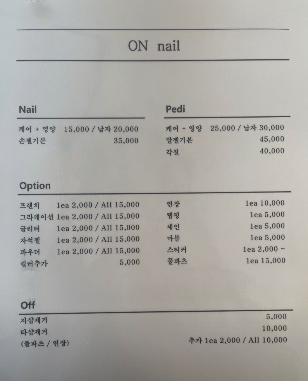 📋 온네일 메뉴 & 가격표 (2025년 기준)